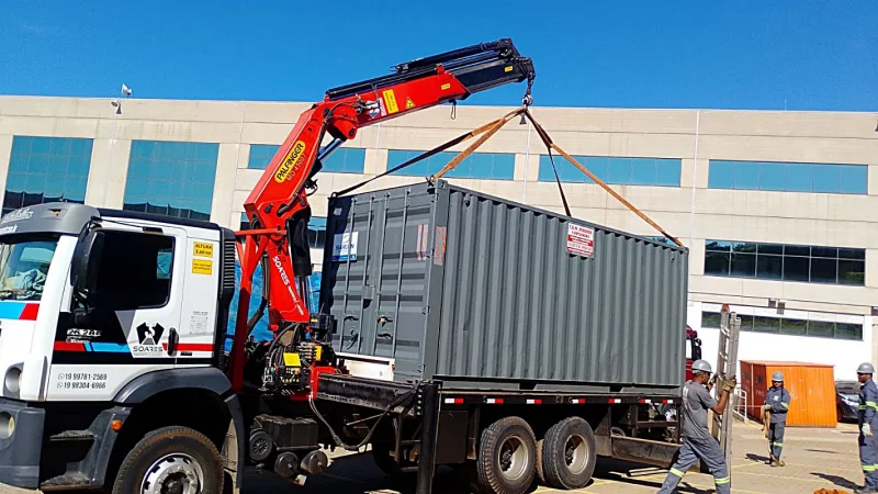 Segurança e eficiência no içamento de container com a Soares Transportes e Locações