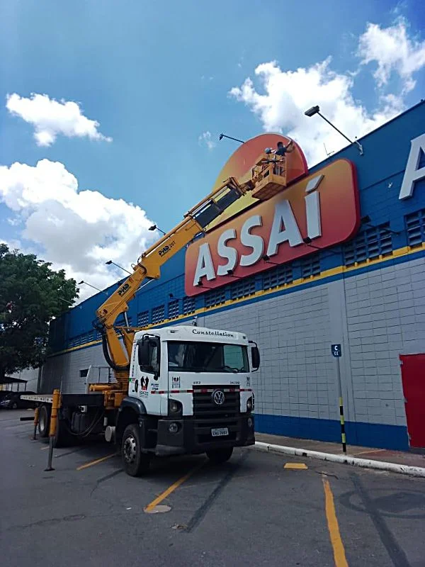 Entre os principais equipamentos utilizados estão os guindastes, caminhões munck e plataformas elevatórias. Essas ferramentas permitem alcançar alturas elevadas e posicionar os luminosos com precisão, garantindo um resultado final de qualidade.