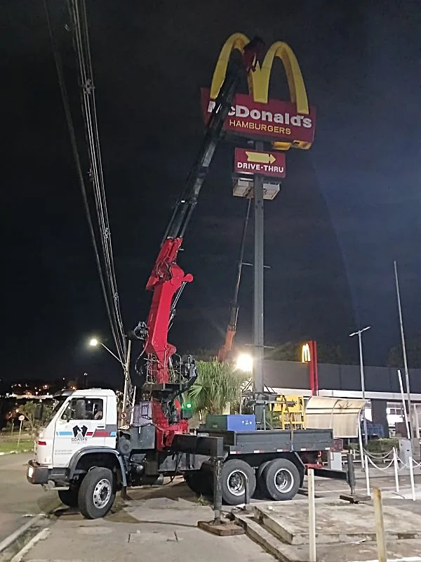 Com a ajuda da Soares Transportes e Locações, especialista em transporte, içamento e movimentação de cargas, é possível realizar o içamento de luminosos de forma segura e eficiente.