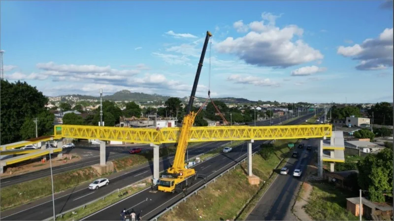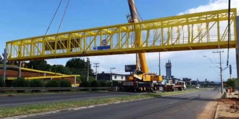 O içamento requer um planejamento detalhado que leva em consideração diversos fatores, como o peso e dimensões da estrutura a ser içada, a distância a ser percorrida, as condições do terreno e a altura em que a passarela será instalada.